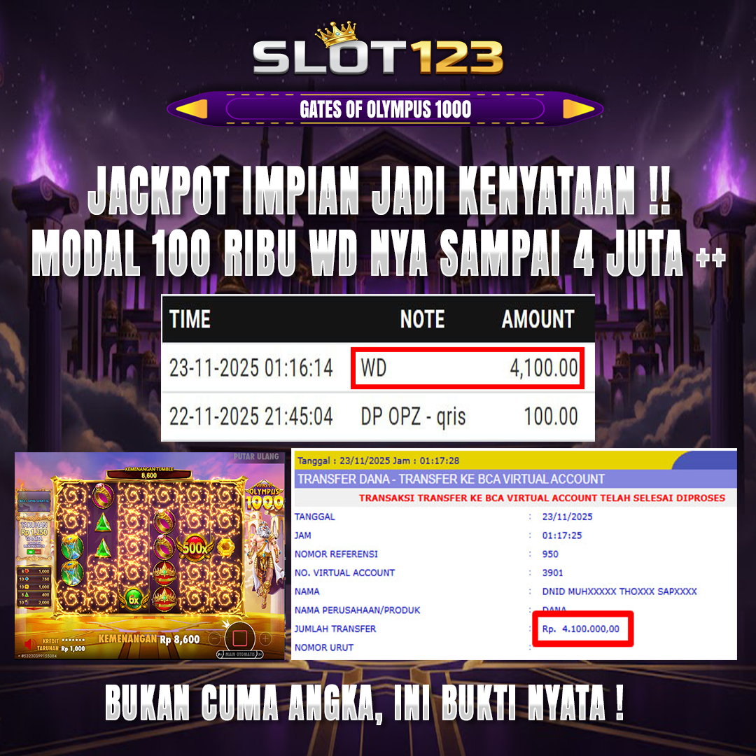 Cek sendiri SLOT123 tempat game jackpot dalam waktu singkat cuma di sini depo 100k bisa withdraw 4,1 juta Sudah di kasih bukti bukan janji yakin ga main?Rugi Dong!